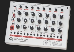 A priori la boite en métal est solide, les potards sont minuscules et les indications qui les concernent pas évidentes à visualiser. La prise en main est un peu compliquée (livrée avec une notice en allemand, il faut en trouver une en anglais sur le net, il n’y en a pas en français) car comme au bon vieux temps des débuts du digital : un bouton = plein de fonctions en cascade ! Le parti pris de ne pas mettre un écran même petit, complique quand même les choses. Pourtant la machine est prévue pour le live et même pour l’impro. On stocke des patterns et non des songs (comme sur laTR 707). On enchaîne évidemment ces patterns et on peut les retravailler en live ou en session, rajoutant des instruments à la volée. Le son est réaliste (ce qui ne m’importe pas beaucoup : si on veut un vrai son de batterie autant se trouver le batteur qui va avec !) mais surtout on peut le travailler assez finement avec LFO réglable, decay, volume séparé des instruments, accent, flam… La connectique est essentiellement midi alors que sur son grand frère je crois qu’elle est aussi cv/gate. La sortie principale est en mono mais il existe de sorties séparés pour BD, SD, tom… en minijack. Je pense qu’une fois que l’on bien appris le mode d’emploi la boite se révèle d’un usage assez facile et rapide. Je l’ai utilisé pour faire de l’électro, et moins les sons étaient « réalistes » mieux ça m’allait (on peut bien dézinguer le cowbell)! Mais j’ai fini par m’en séparer sans regret en raison de son ergonomie (il faut avoir des doigts de fée !) et la limitation de ses possibilités. Le rapport qualité/prix n’est pas extraordinaire.